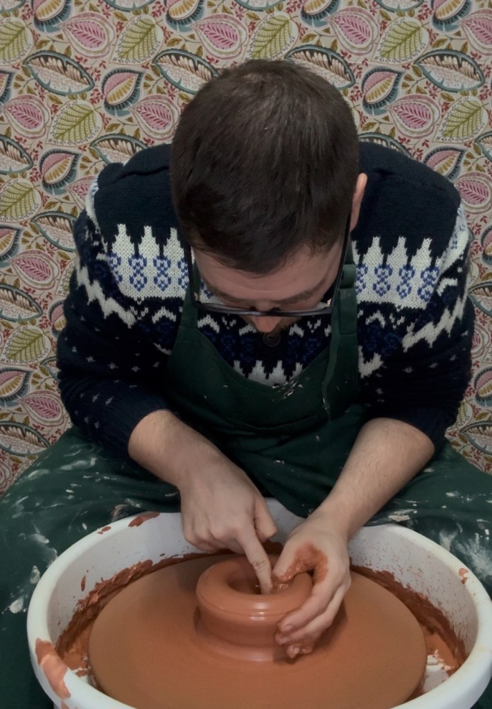 Dopo la centratura, arriva il primo vero gesto creativo: aprire l’argilla.