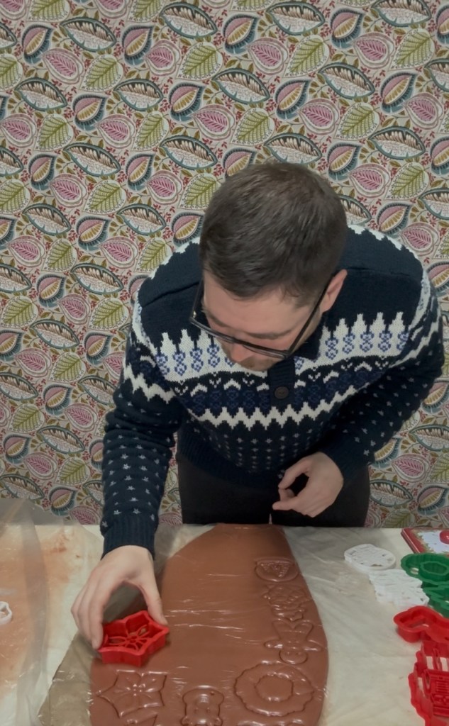 A questo punto entrano in gioco i taglia biscotti natalizi. Alberi, stelle, omini, sagome familiari che tutti riconosciamo. Grazie alla pellicola, le forme si imprimono con precisione, senza strappi, senza resistenze. È un momento quasi giocoso, che riporta all’infanzia.