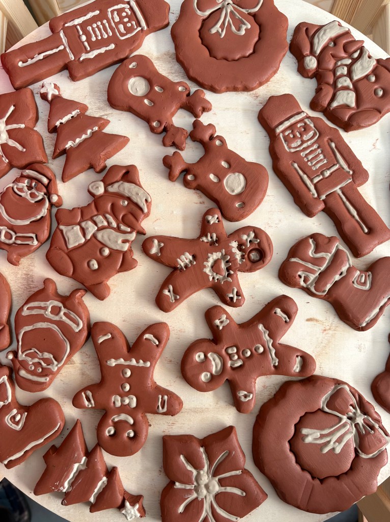 I biscotti natalizi di ceramica nascono così, da un processo semplice, quasi meditativo, che riprende quello della pasticceria ma lo traduce nel linguaggio della materia.