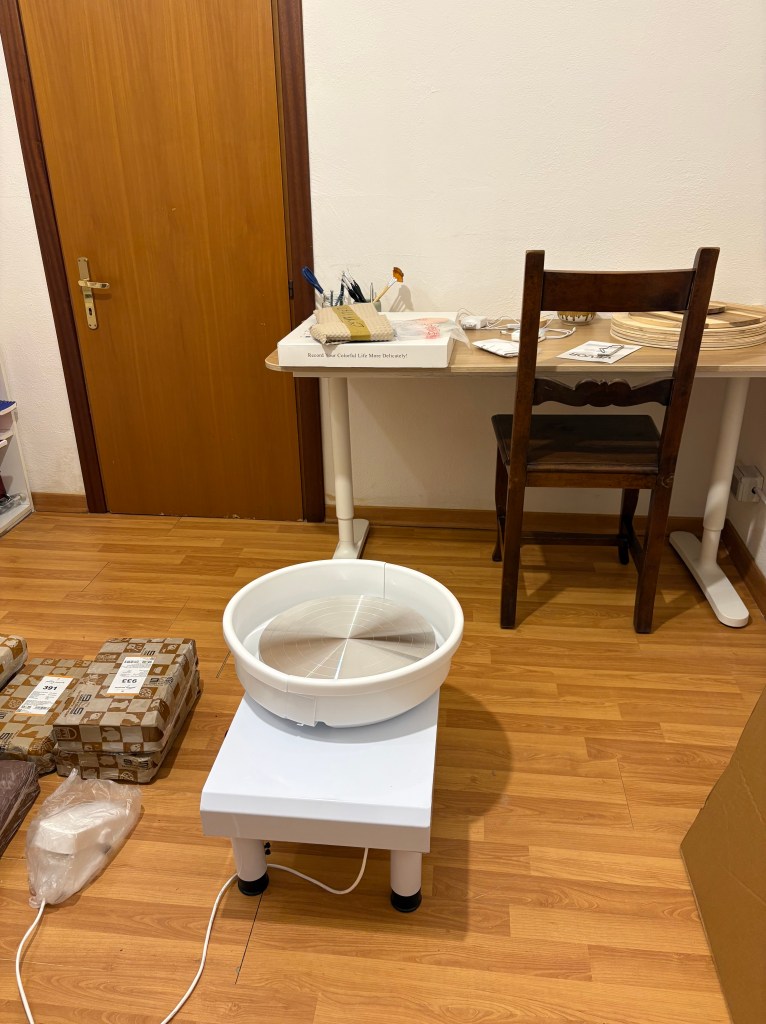 Dal Friuli arrivano altri doni: gli amici mi regalano un tornio da tenere a Roma. Un ponte concreto tra due luoghi che amo. La possibilità di fare ceramica ovunque io sia, senza dover scegliere.
